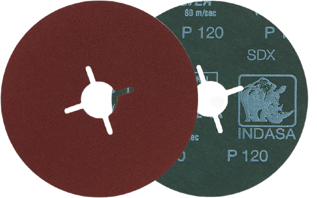 Disco de fibra em óxido de alumínio com suporte de elevada resistência a vincos e rasgamento (fibra vucanizada).
